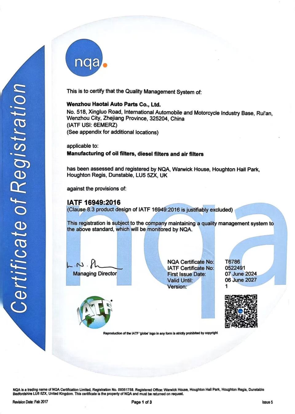 С момента нашего основания в 2003 году мы придерживались стандарта IATF16949.